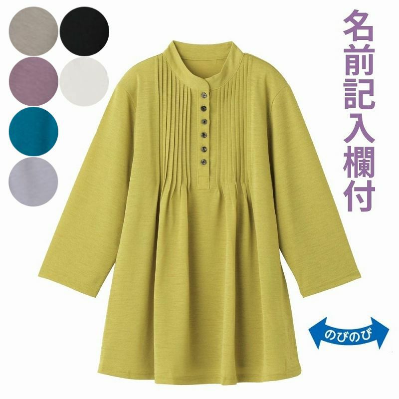 【婦人7分袖ピンタック半開チュニック M-L・LL】 A18-821229