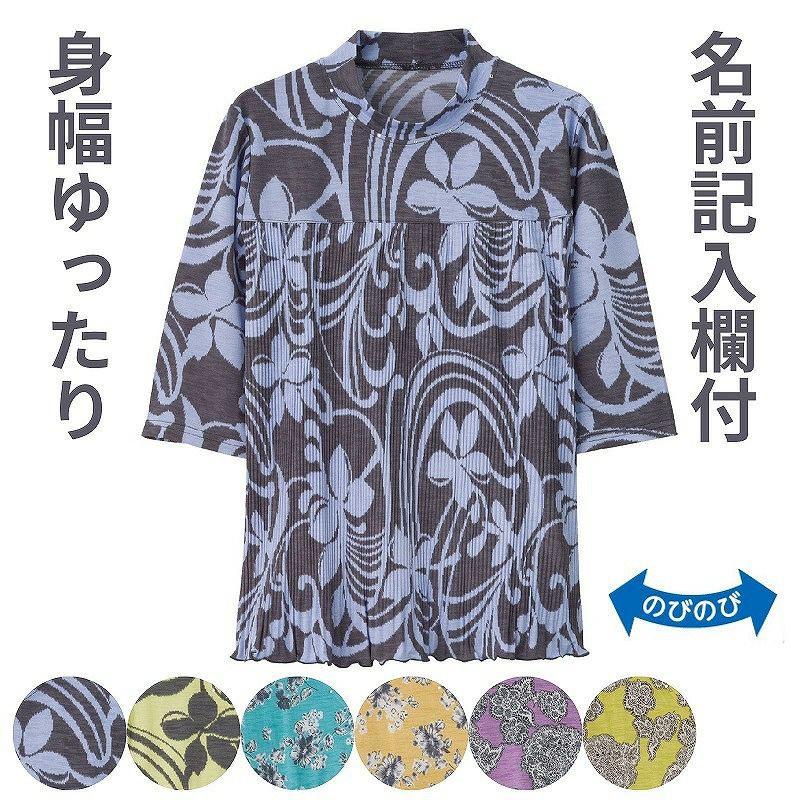 快適な日常生活をお過ごしいただけるためにお役立ていただける商品です着やすさとやさしい工夫のアイテムです季節に合わせて1枚着でも、重ね着でも自在なお洒落なアイテムです!衿元にラインストーン付!ゆったりした身幅で、脱ぎ着もしやすく、快適な着心地です。名前記入欄付で間違い防止名前が書けるタグ付きなので、入院や施設入居時など、脱いだ後や洗濯後も他人のものと間違うことがありません。●品名/6分袖前身切替プリーツTシャツ●色/ブルー花・カラシ花・イエロー小花・サックス小花・イエローペイズリー・パープルペイズリー●サイズ/M~L●素材/ポリエステル95%・ポリウレタン5%●生産国/中国製●仕様/洗濯機OK 名前記入欄付 身幅ゆったり のびのび 6分袖 ※柄の出方が異なる場合があります。 ●説明/季節に合わせて1枚着でも、重ね着でも自在なお洒落なアイテムです!衿元にラインストーン付!