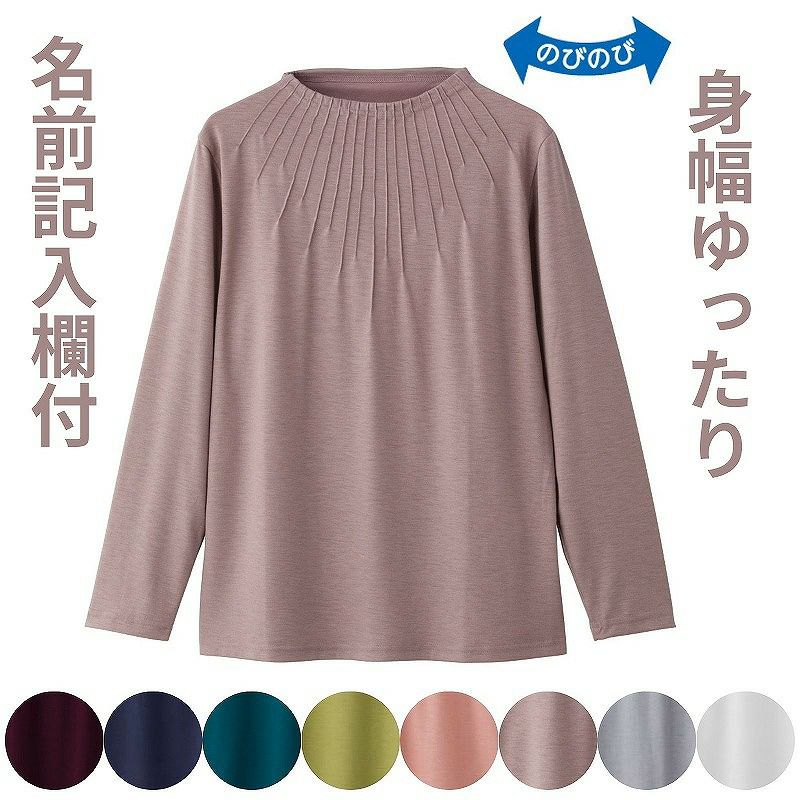快適な日常生活をお過ごしいただけるためにお役立ていただける商品です着やすさとやさしい工夫のアイテムです【大活躍のシンプルインナー】なんにでも合わせやすいシンプルデザイン。年間を通して着られる長袖インナー、衿元に流れるようなピンタック使い。ゆったりした身幅で、脱ぎ着もしやすく、快適な着心地です。名前記入欄付で間違い防止名前が書けるタグ付きなので、入院や施設入居時など、脱いだ後や洗濯後も他人のものと間違うことがありません。●品名/前身ピンタックTシャツ●色/オフ・ワサビ・グレー・グリーン・サーモンピンク・モカベージュ・ボルドー・パープルグレー●サイズ/M~L・LL●素材/ポリエステル95%・ポリウレタン5%●生産国/韓国製●仕様/手洗い 名前記入欄付 身幅ゆったり のびのび●説明/【大活躍のシンプルインナー】なんにでも合わせやすいシンプルデザイン。年間を通して着られる長袖インナー、衿元に流れるようなピンタック使い。