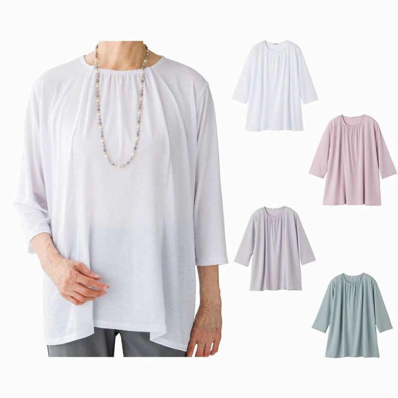 快適な日常生活をお過ごしいただけるためにお役立ていただける商品です着やすさとやさしい工夫のアイテムです今どきのゆったりコーデで大人カジュアルにカジュアルな中にもきちんと感のある装い衿元のギャザーが愛らしい着回し自在のチュニックです。●品名/婦人7分袖衿元ギャザーチュニック●色/オフ・ローズ・アイスグレー・ミントグリーン●サイズ/M~L・LL●素材/ポリエステル95%・ポリウレタン5% 接触冷感●生産国/韓国製●仕様/洗濯機OK●説明/今どきのゆったりコーデで大人カジュアルにカジュアルな中にもきちんと感のある装い衿元のギャザーが愛らしい着回し自在のチュニックです。