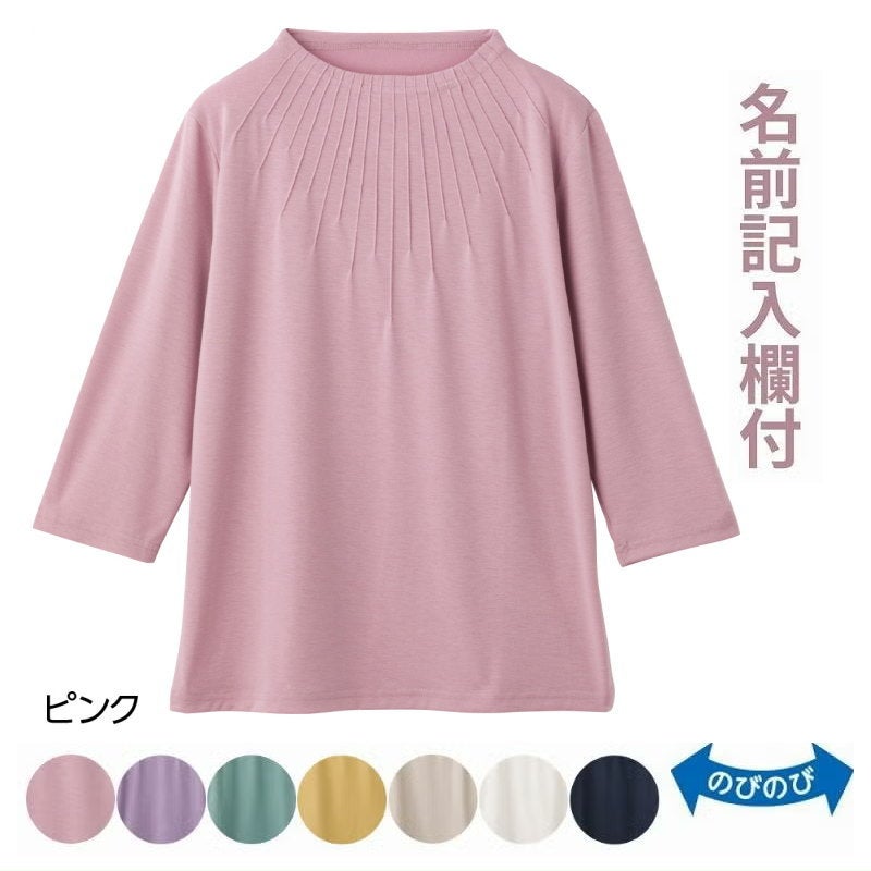 快適な日常生活をお過ごしいただけるためにお役立ていただける商品です着やすさとやさしい工夫のアイテムです【デイリーカジュアルスタイル】軽快な大人の遊び心を弾ませてデイリーの着こなしを!着心地の良いきれな色目のさわやかインナーです首元スッキリボトルネック。名前記入欄付で間違い防止名前が書けるタグ付きなので、入院や施設入居時など、脱いだ後や洗濯後も他人のものと間違うことがありません。●品名/婦人7分袖衿元ピンタックTシャツ●色/オフ・ベージュ・ピンク・カラシ・グリーン・ラベンダー・ネイビー●サイズ/M~L・LL●素材/ポリエステル60%・レーヨン35%・ポリウレタン5%●生産国/韓国製●仕様/洗濯機OK 名前記入欄付 のびのび 7分袖●説明/【デイリーカジュアルスタイル】軽快な大人の遊び心を弾ませてデイリーの着こなしを!着心地の良いきれな色目のさわやかインナーです首元スッキリボトルネック。