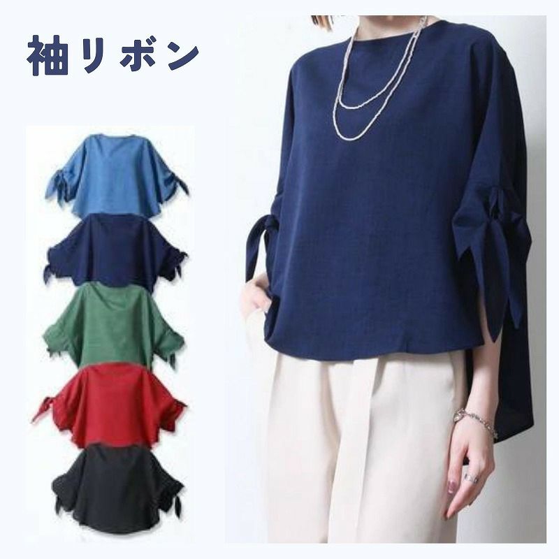 快適な日常生活をお過ごしいただけるためにお役立ていただける商品です【カジュアルスタイル】軽快な大人の遊び心を弾ませてデイリーの着こなしをレベルアップ●品名/袖リボン七分袖チュニック●色/ブルーグレー、グリーン、ブラック、レッド、ネイビー●サイズ/M-L:着丈:64cm 肩幅:42cm 身幅:約70cm 天幅:22cm 袖丈:約36cm採寸は平置きにして測っていますので、素材等により若干の誤差があることがございます●素材/ポリエステル100%●生産国/中国製●仕様/ゆったりサイズで着心地抜群です。●説明/さりげない袖のリボンがかわいい♡サラッと着れて首元スッキリ!高見えする商品です!