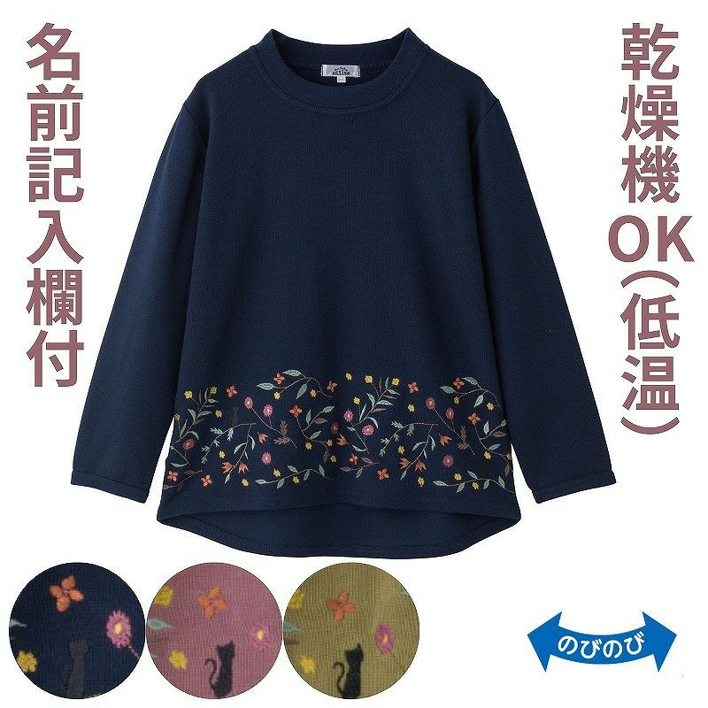快適な日常生活をお過ごしいただけるためにお役立ていただける商品です着やすさとやさしい工夫のアイテムです【ちょっぴり特別感のあるデイリーウエア】秋か長く使える素材感のトレーナー。裾のししゅうがかわいらしい♪お手入れ簡単で、お洒落も諦めない!乾燥機が使えるからお手入れ簡単!【乾燥機対応アウター】お手入れラクラクでうれしい!お洗濯の手間が減ります。乾燥機は低温でご使用ください。後ろ身頃を長めにしているので、背中が曲がった方でも、背中が出にくい設計です。ゆったりした身幅で、脱ぎ着もしやすく、快適な着心地です。名前記入欄付で間違い防止名前が書けるタグ付きなので、入院や施設入居時など、脱いだ後や洗濯後も他人のものと間違うことがありません。●品名/刺繍トレーナー●色/ローズ・ワカクサ・コン●サイズ/M~L●素材/ポリエステル65%・綿35%●生産国/中国製●仕様/洗濯機OK(ネット使用) 名前記入欄付 後ろ身頃長め 身幅ゆったり のびのび 乾燥機OK(60℃まで)●説明/【ちょっぴり特別感のあるデイリーウエア】秋か長く使える素材感のトレーナー。裾のししゅうがかわいらしい♪お手入れ簡単で、お洒落も諦めない!乾燥機が使えるからお手入れ簡単!【乾燥機対応アウター】お手入れラクラクでうれしい!お洗濯の手間が減ります。乾燥機は低温でご使用ください。