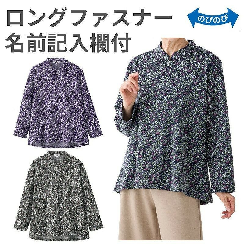 快適な日常生活をお過ごしいただけるためにお役立ていただける商品です着やすさとやさしい工夫のアイテムですファスナー合わせが不要。下からでも着脱できます。上からでも下からでも脱ぎ着できるロングファスナーで着替えがラクラクです。肩が上がりにくい方もスムーズに脱ぎ着できます。ひらりと揺れるAラインが素敵!お腹周りゆったりで締め付け感なく快適♪後ろ身頃を長めにしているので、背中が曲がった方でも、背中が出にくい設計です。ゆったりした身幅で、脱ぎ着もしやすく、快適な着心地です。名前記入欄付で間違い防止名前が書けるタグ付きなので、入院や施設入居時など、脱いだ後や洗濯後も他人のものと間違うことがありません。●品名/ロングファスナーAラインTシャツ●色/パープル・コン・グレー●サイズ/M~L・S・LL●素材/ポリエステル85%・レーヨン10%・ポリウレタン5%●生産国/中国製●仕様/洗濯機OK(ネット使用) 名前記入欄付 ロングファスナー 後ろ身頃長め 身幅ゆったり のびのび Sサイズあり 裏起毛 ロングファスナー40㎝●説明/ファスナー合わせが不要。下からでも着脱できます。上からでも下からでも脱ぎ着できるロングファスナーで着替えがラクラクです。肩が上がりにくい方もスムーズに脱ぎ着できます。ひらりと揺れるAラインが素敵!お腹周りゆったりで締め付け感なく快適♪