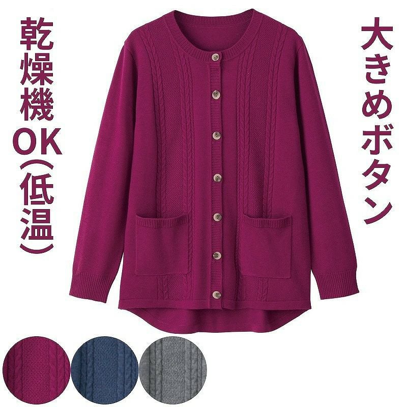 快適な日常生活をお過ごしいただけるためにお役立ていただける商品です着やすさとやさしい工夫のアイテムです【あったかニットコレクション】お出かけにもおうちでのリラックス時にも着られるから多方面で大活躍のアイテムゆったりとしたシルエット。軽い着心地と、なめらかでもっちりな肌触り。シックなカラーがおしゃれ。乾燥機が使えるからお手入れ簡単!【乾燥機対応アウター】お手入れラクラクでうれしい!お洗濯の手間が減ります。乾燥機は低温でご使用ください。着脱カンタン!様々な工夫力が入りやすくつかみやすい大きめボタンと斜めボタンホールで留め外しがスムースで脱ぎ着しやすい工夫を凝らした優しい設計です。後ろ身頃を長めにしているので、背中が曲がった方でも、背中が出にくい設計です。ゆったりした身幅で、脱ぎ着もしやすく、快適な着心地です。名前記入欄付で間違い防止名前が書けるタグ付きなので、入院や施設入居時など、脱いだ後や洗濯後も他人のものと間違うことがありません。●品名/なめらか毛混斜め釦ホールニットカーディガン●色/チェリー・グレー・ブルー●サイズ/M~L・LL●素材/ポリエステル50%・ナイロン25%・アクリル20%・毛5%●生産国/中国製●仕様/洗濯機OK(ネット使用) 名前記入欄付 大きめボタン&斜めボタンホール 前ポケット付 後ろ身頃長め 身幅ゆったり 乾燥機OK(60℃まで)●説明/【あったかニットコレクション】お出かけにもおうちでのリラックス時にも着られるから多方面で大活躍のアイテムゆったりとしたシルエット。軽い着心地と、なめらかでもっちりな肌触り。シックなカラーがおしゃれ。乾燥機が使えるからお手入れ簡単!【乾燥機対応アウター】お手入れラクラクでうれしい!お洗濯の手間が減ります。乾燥機は低温でご使用ください。