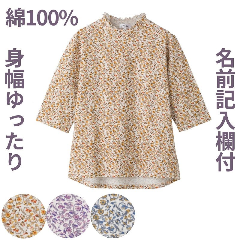 快適な日常生活をお過ごしいただけるためにお役立ていただける商品です着やすさとやさしい工夫のアイテムですさらっと軽い綿100%素材で快適に着られる5分袖Tシャツ。身幅ゆったり&後ろ身頃長めで体型をやさしくカバーします♪洗濯機OKでお手入れしやすく、名前記入欄付きで安心。暑い季節の普段使いにぴったりの一枚です。後ろ身頃を長めにしているので、背中が曲がった方でも、背中が出にくい設計です。ゆったりした身幅で、脱ぎ着もしやすく、快適な着心地です。名前記入欄付で間違い防止名前が書けるタグ付きなので、入院や施設入居時など、脱いだ後や洗濯後も他人のものと間違うことがありません。●品名/5分袖後ろ長めTシャツ●色/オレンジ・ブルー・パープル●サイズ/M~L・LL●素材/綿100%●生産国/中国製●仕様/洗濯機OK(ネット使用) 名前記入欄付 後ろ身頃長め 身幅ゆったり 5分袖 さらっとした風合いの綿100%素材を使用。春夏にピッタリなTシャツです!