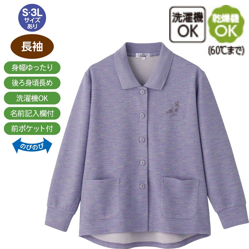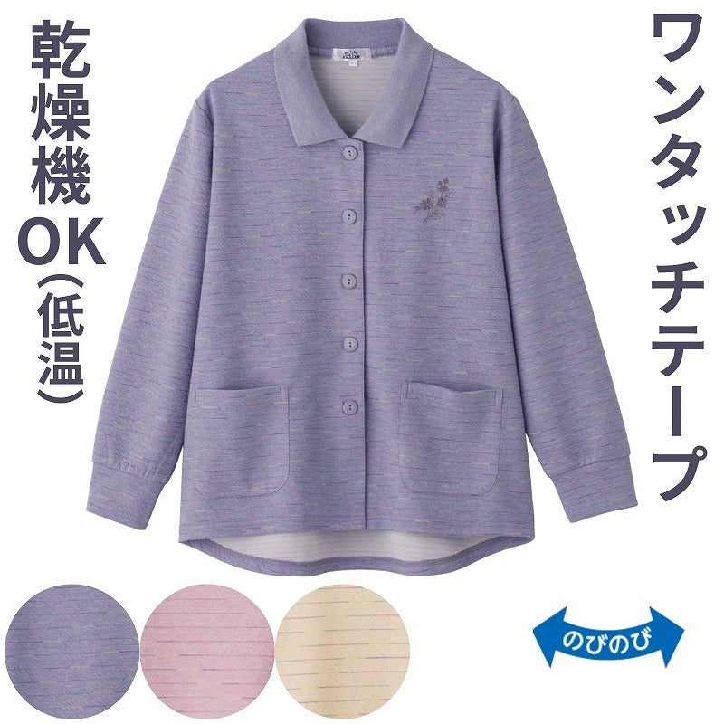 快適な日常生活をお過ごしいただけるためにお役立ていただける商品です着やすさとやさしい工夫のアイテムです着合わせしやすいシンプルデザインのポロカーディガン。見た目は普通のボタン、裏はワンタッチ仕様で開け閉めが簡単にできます。S~3Lサイズまで選べて、乾燥機OK(60℃まで)でお手入れもラクラク♪毎日の装いに使いやすい便利な一枚です。着脱カンタン!様々な工夫ワンタッチテープ仕様でボタンが留めにくい方も脱ぎ着しやすい工夫を凝らした優しい設計です。手や指の負担も軽減します。着替えや検温時にはさっと開閉できます。飾りボタンで見た目は普通の洋服と変わりませんマジックテープ商品に関するご注意洗濯時にはゴミのなどの付着の原因になりますのでテープを張り合わせてください。後ろ身頃を長めにしているので、背中が曲がった方でも、背中が出にくい設計です。ゆったりした身幅で、脱ぎ着もしやすく、快適な着心地です。名前記入欄付で間違い防止名前が書けるタグ付きなので、入院や施設入居時など、脱いだ後や洗濯後も他人のものと間違うことがありません。乾燥機が使えるからお手入れ簡単!【乾燥機対応アウター】お手入れラクラクでうれしい!お洗濯の手間が減ります。乾燥機は低温でご使用ください。●品名/ワンタッチテープポロカーディ●色/ベージュ・ローズ・パープル●サイズ/M~L・S・LL・3L●素材/ポリエステル75%・綿25%、衿部分:ポリエステル65%・綿35%●生産国/中国製●仕様/洗濯機OK(ネット使用) 名前記入欄付 ワンタッチテープ 前ポケット付 後ろ身頃長め 身幅ゆったり のびのび 乾燥機OK(60℃まで) 長袖着合わせしやすいシンプルなデザインです。