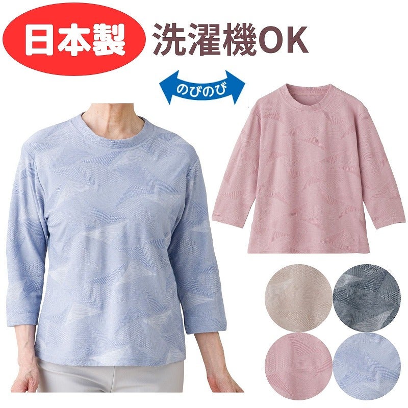 快適な日常生活をお過ごしいただけるためにお役立ていただける商品です着やすさとやさしい工夫のアイテムです春夏にぴったりの涼しげな素材で快適な7分袖Tシャツ♪身幅ゆったりで風通しがよく、軽やかな着心地です。日本製の上質な仕上がりで安心。洗濯機OKでお手入れしやすく、暑い季節にうれしい一枚です。ゆったりした身幅で、脱ぎ着もしやすく、快適な着心地です。●品名/7分袖涼しやジャカードTシャツ●色/ベージュ・ピンク・ブルー・ネイビー●サイズ/M・L・LL●素材/綿55%・ポリエステル45%●生産国/日本製●仕様/洗濯機OK(ネット使用) 日本製 身幅ゆったり のびのび 7分袖 春夏にぴったりな涼しげな素材です。