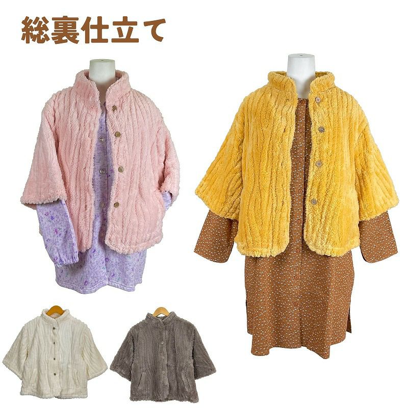 おしゃれ着としてもルームウェアとしても楽しんでいただけるアイテムです軽くてふわふわとした柔らかい素材で、身頃は勿論、袖まで裏が付いています。滑りが良くて、さらに暖かく、家事や在宅ワークにもぴったり!快適に過ごせます。ナチュラルで柔らかい雰囲気を感じられるデザインとカラーリングでおでかけやお家でのリラックスタイムをお楽しみください。●サイズ/M-Lバスト:79~94 身長:154~162●材質/表地:ポリエステル100%裏地:ポリエステル100%●生産国/中国製
