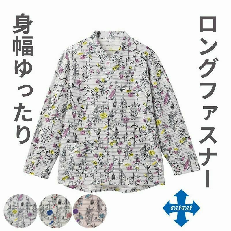 ●仕様/洗濯機OK  名前記入欄付 ロングファスナー 前ポケット付 後ろ身頃長め 身幅ゆったり のびのび(縦・横) 長袖 3Lサイズあり
