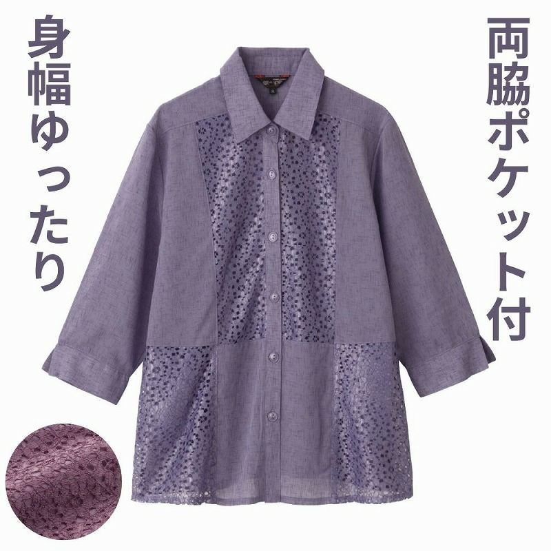快適な日常生活をお過ごしいただけるためにお役立ていただける商品です着やすさとやさしい工夫のアイテムです着やすさと着心地ゆったり感がうれしいお洒落なブラウス夏のお出かけ着に最適。レース切替がエレガント。ゆったりした身幅で、脱ぎ着もしやすく、快適な着心地です。名前記入欄付で間違い防止名前が書けるタグ付きなので、入院や施設入居時など、脱いだ後や洗濯後も他人のものと間違うことがありません。●品名/婦人7分袖レース切替ブラウスジャケット●色/ピンク・パープル●サイズ/M・L●素材/ポリエステル100%●生産国/中国製●仕様/手洗い 名前記入欄付 身幅ゆったり 両脇ポケット付 7分袖 7分袖●説明/着やすさと着心地ゆったり感がうれしいお洒落なブラウス夏のお出かけ着に最適。レース切替がエレガント。