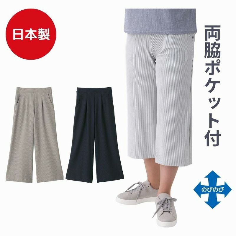 【婦人ストライプワイドパンツ(股下52cm) Lのみ】 wzA18-821256z