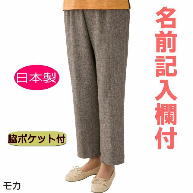 快適な日常生活をお過ごしいただけるためにお役立ていただける商品ですデイリーカジュアルスタイル。お出かけを素敵に演出!軽快な大人の遊び心を弾ませてデイリーの着こなしをレベルアップ。膝下がストレートで、足が長く見えるストレッチパンツ。機能とお洒落を追求しました。日本製フリーパンツ。名前記入欄付で間違い防止名前が書けるタグ付きなので、入院や施設入居時など、脱いだ後や洗濯後も他人のものと間違うことがありません。●品名/縦伸びストレートパンツ●色/モカ・ライトグレーブラック●サイズ/M・L・LL・3L●素材/ポリエステル96%・ポリウレタン4%●追加説明/名札付き ウエスト総ゴム●生産国/日本製●仕様/洗濯機OK 両脇ポケット 日本製 のびのび ●説明/膝下がストレートで、足が長く見えるストレッチパンツ。