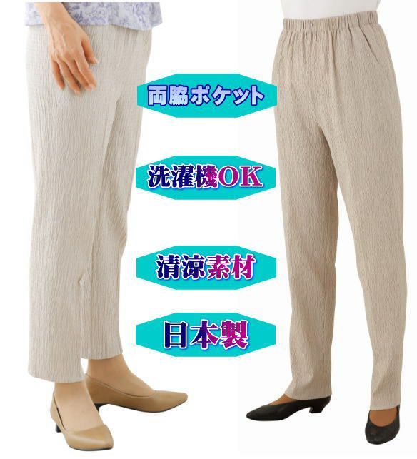 【婦人涼しや楊柳フリーパンツ(股下60cm) LL】wzA1439819z 春夏用