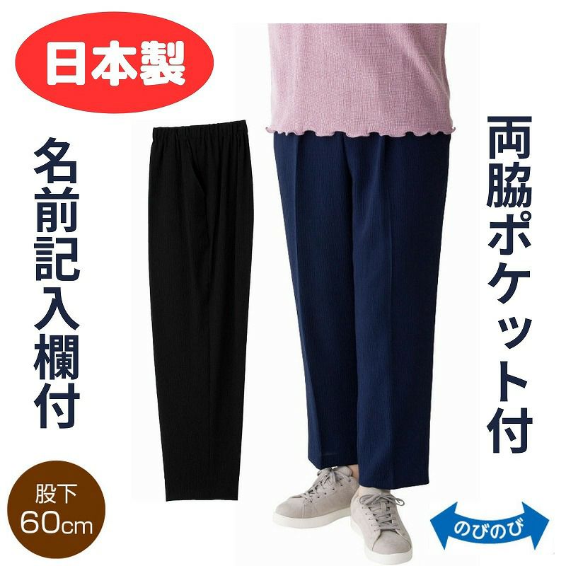 快適な日常生活をお過ごしいただけるためにお役立ていただける商品です着やすさとやさしい工夫のアイテムです気軽にはけるから家でも快適ホームスタイル夏の暑い日に最適なリラックスできる涼しげなパンツです清涼感のある楊柳ではき心地は快適。【深履きパンツ】股上深めの設計でしゃがんでも背中が出にくい!股上が深めに設計されていてゆったりと腰回りをおおうのでしゃがんでも背中や下着が見えてしまう心配がありません。腰の曲がりが気になる方にもおすすめ。【深履きパンツ】股上深めの設計でしゃがんでも背中が出にくい!股上が深めに設計されていてゆったりと腰回りをおおうのでしゃがんでも背中や下着が見えてしまう心配がありません。腰の曲がりが気になる方にもおすすめ。名前記入欄付で間違い防止名前が書けるタグ付きなので、入院や施設入居時など、脱いだ後や洗濯後も他人のものと間違うことがありません。●品名/婦人楊柳深履きパンツ●色/グレー・ネイビー・ブラック●サイズ/M・L・LL・3L●素材/ポリエステル54%・レーヨン46%●生産国/日本製●仕様/洗濯機OK 名前記入欄付 両脇ポケット付 のびのび 股下60cm 深ばきタイプ●説明/気軽にはけるから家でも快適ホームスタイル夏の暑い日に最適なリラックスできる涼しげなパンツです清涼感のある楊柳ではき心地は快適。