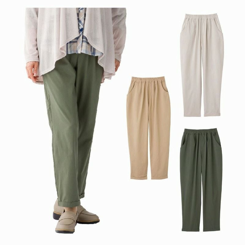 快適な日常生活をお過ごしいただけるためにお役立ていただける商品です着やすさとやさしい工夫のアイテムです人気の秘密は「おしゃれ」と機能性でかなえる「着やすさ」です布帛素材で見た目はしっかり、のびのびで着心地快適。軽やかなお出かけをお楽しみください●品名/婦人綿混ストレッチテーパードパンツ●色/アイボリー・ベージュ・カーキ●サイズ/M・L・LL●素材/綿60%・ナイロン35%・ポリウレタン5%●生産国/中国製●仕様/洗濯機OK 名前記入欄付 両脇両後ポケット付 のびのび 股下62cm ウエスト内紐付 ※ウエストゴム取替え仕様ではありません。●説明/人気の秘密は「おしゃれ」と機能性でかなえる「着やすさ」です布帛素材で見た目はしっかり、のびのびで着心地快適。軽やかなお出かけをお楽しみください