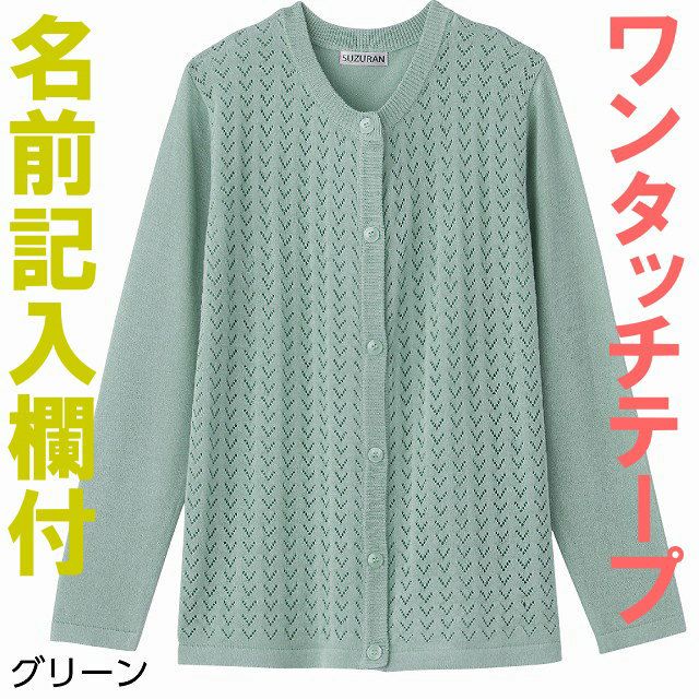 マジックテープ商品に関するご注意洗濯時にはゴミのなどの付着の原因になりますのでテープを張り合わせてください。脱ぎ着もしやすく、快適な着心地です。名前記入欄付で間違い防止名前が書けるタグ付きなので、入院や施設入居時など、脱いだ後や洗濯後も他人のものと間違うことがありません。●品名/婦人ニットワンタッチ丸首カーディ●色/ベージュ・ラベンダー・ローズ・グリーン●サイズ/M~L●素材/レーヨン90%・ナイロン10%●生産国/中国製●仕様/ワンタッチテープ 名前記入欄付 身幅ゆったり 洗濯機OK(ネット使用)●説明/見た目は普通のボタンですが、留め外しが簡単なワンタッチテープ。