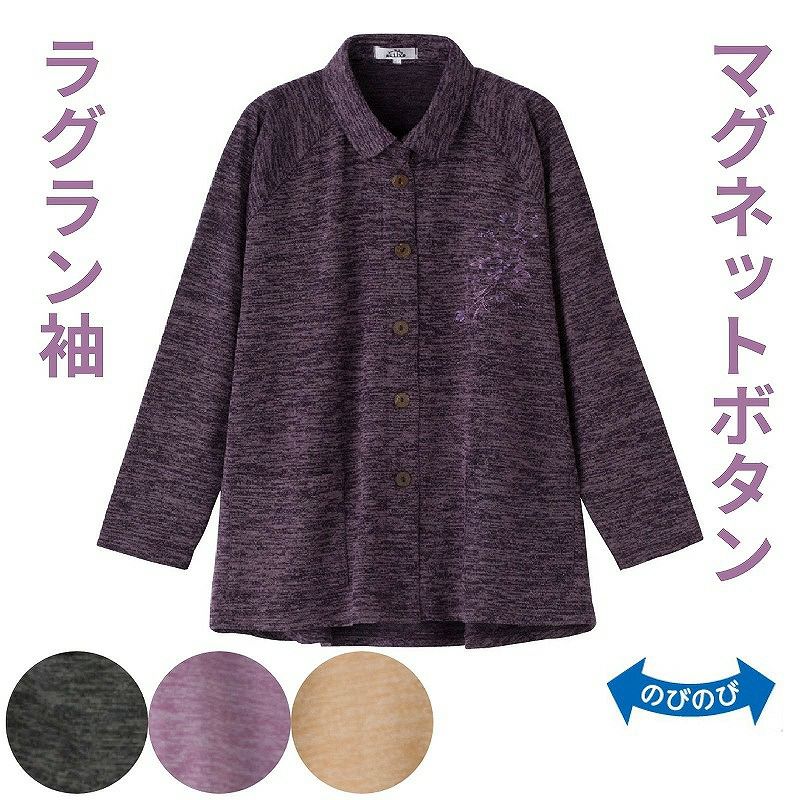 快適な日常生活をお過ごしいただけるためにお役立ていただける商品です着やすさとやさしい工夫のアイテムです着やすさとやさしい工夫のアイテムです片手でも留めやすいマグネット釦!指先が不自由に感じる方のトレーニングとして最適です。【指先ストレッチ】とめにくい第1・第2ボタンがマグネットでその下は普通のボタンになっております。衿付きで首まわりあたたか♪※ペースメーカーをお使いの方は使用を控えてください。(誤作動を招く恐れがあります。)着脱カンタン!様々な工夫2種類のボタンがあるので指先のトレーニングとして最適ですカジュアルな装いで、片手でも簡単に留めはずしができる便利なマグネットボタン(第一・第二)と大きめボタン(第三ボタン以降)仕様。ゆったりした身幅で、脱ぎ着もしやすく、快適な着心地です。後ろ身頃を長めにしているので、背中が曲がった方でも、背中が出にくい設計です。【動きやすいラグラン袖】肩まわりがゆったりしているので、肩や腕が動かしやすく、脱ぎ着がしやすい仕様です。【動きやすいラグラン袖】肩まわりがゆったりしているので、肩や腕が動かしやすく、脱ぎ着がしやすい仕様です。●品名/婦人カット衿付マグネット釦カーディガン(指先ストレッチ)●色/ベージュ・ローズパープル・濃パープル・クロ●サイズ/M-L●素材/ポリエステル85%・レーヨン10%・ポリウレタン5%●生産国/中国製●仕様/洗濯機OK 名前記入欄付 マグネットボタン(ひっぱるタイプ) ポケット付 後ろ身頃長め 動きやすいラグラン袖 身幅ゆったり のびのび●説明/着やすさとやさしい工夫のアイテムです片手でも留めやすいマグネット釦!指先が不自由に感じる方のトレーニングとして最適です。【指先ストレッチ】とめにくい第1・第2ボタンがマグネットでその下は普通のボタンになっております。衿付きで首まわりあたたか♪※ペースメーカーをお使いの方は使用を控えてください。(誤作動を招く恐れがあります。)