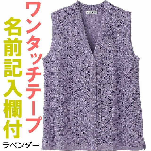 マジックテープ商品に関するご注意洗濯時にはゴミのなどの付着の原因になりますのでテープを張り合わせてください。脱ぎ着もしやすく、快適な着心地です。名前記入欄付で間違い防止名前が書けるタグ付きなので、入院や施設入居時など、脱いだ後や洗濯後も他人のものと間違うことがありません。●品名/婦人ニットワンタッチV首ベスト●色/ベージュ・ラベンダー・ローズ・グリーン●サイズ/M~L●素材/レーヨン90%・ナイロン10%●生産国/中国製●仕様/ワンタッチテープ 名前記入欄付 身幅ゆったり 洗濯機OK(ネット使用)●説明/見た目は普通のボタンですが、留め外しが簡単なワンタッチテープ。