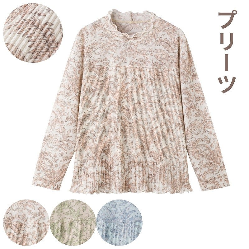 快適な日常生活をお過ごしいただけるためにお役立ていただける商品です着やすさとやさしい工夫のアイテムです伸びやかなプリーツ素材で動きやすく、心地よく着られる一枚です♪ 落ち着いたボタニカル柄にメロウ衿が華やかさを添え、顔まわりをやさしく明るい印象に。軽やかな着心地で装いに上品な彩りをプラスしてくれます。●品名/メロウプリーツTシャツ●色/グリーン・ベージュ・ブルー●サイズ/M~L●素材/ポリエステル95%・ポリウレタン5%●生産国/中国製●仕様/手洗い 伸びやかなプリーツで着心地快適。ボタニカル柄とメロウ衿で華やかに。