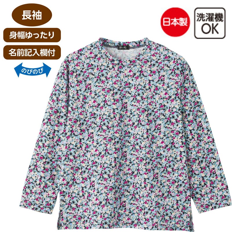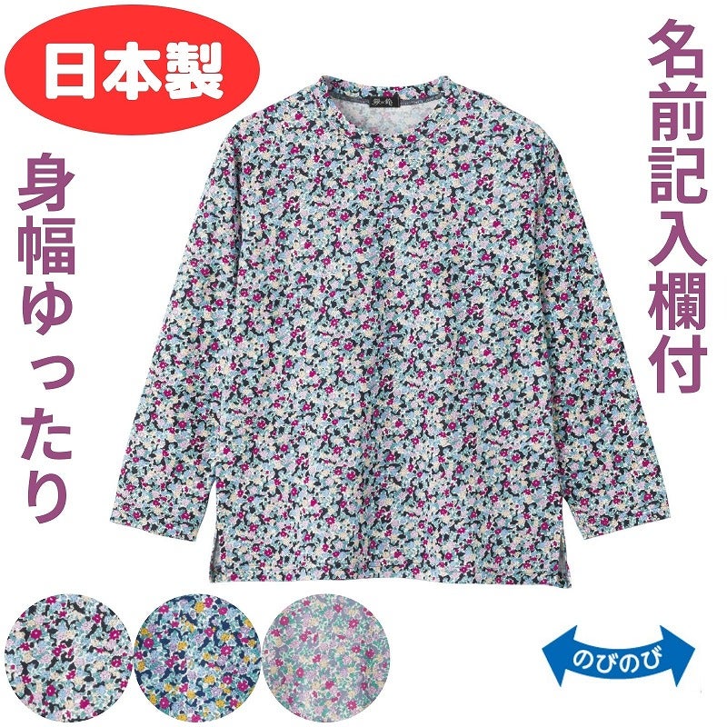 快適な日常生活をお過ごしいただけるためにお役立ていただける商品です着やすさとやさしい工夫のアイテムです綿とモダールを使用した、やさしくなめらかな着心地のTシャツ。京染めの風合いが上品で、装いに落ち着いた華やかさを添えます。身幅ゆったりで動きやすく、名前記入欄付きで安心♪日本製の丁寧な仕立ての一枚です。ゆったりした身幅で、脱ぎ着もしやすく、快適な着心地です。名前記入欄付で間違い防止名前が書けるタグ付きなので、入院や施設入居時など、脱いだ後や洗濯後も他人のものと間違うことがありません。●品名/京染めやわらか綿レーヨンTシャツ●色/パープル・ブルーパープル・クロ●サイズ/M~L●素材/綿50%・レーヨン(モダール)50%●生産国/日本製●仕様/洗濯機OK(ネット使用) 日本製 名前記入欄付 身幅ゆったり のびのび 長袖 綿&モダール素材でやわらかな着心地。安心の日本製です。