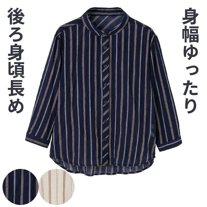 快適な日常生活をお過ごしいただけるためにお役立ていただける商品です着やすさとやさしい工夫のアイテムです【サマーカジュアルスタイル】お出かけにも普段着にも着られるから多方面で大活躍のアイテムゆったりとしたシルエット。着やすさと着心地ゆったり感がうれしいお洒落なブラウスです。身体をすっきり見せてくれるストライプ柄。ゆったりした身幅で、脱ぎ着もしやすく、快適な着心地です。後ろ身頃を長めにしているので、背中が曲がった方でも、背中が出にくい設計です。●品名/7分袖ストライプブラウス●色/ホワイト・ネイビー●サイズ/M・L●素材/綿99%・ポリウレタン1%●生産国/中国製●仕様/洗濯機OK 後ろ身頃長め 身幅ゆったり 7分袖 ●説明/【サマーカジュアルスタイル】お出かけにも普段着にも着られるから多方面で大活躍のアイテムゆったりとしたシルエット。着やすさと着心地ゆったり感がうれしいお洒落なブラウスです。身体をすっきり見せてくれるストライプ柄。