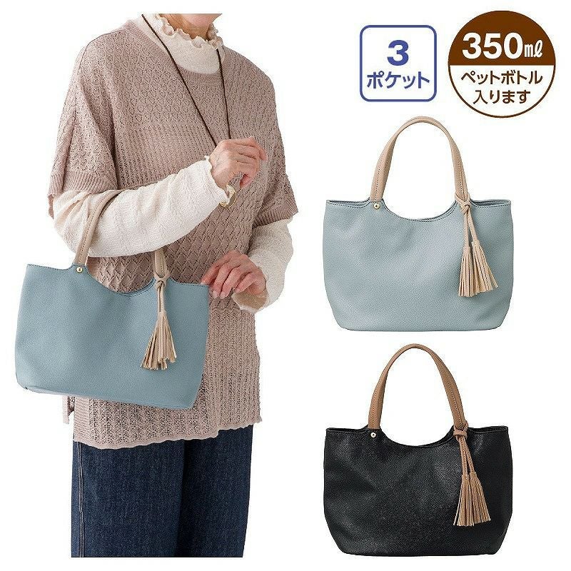 快適な日常生活をお過ごしいただけるためにお役立ていただける商品ですやさしい工夫のアイテムです柔らかく上質感のあるフェイクレザーを使用しました。シンプルなデザインで毎日使にぴったり。●品名/やわらかフェイクレザートートバッグ●色/ブルー・ブラック●サイズ/フリー●素材/合成皮革●生産国/中国製●仕様/内側ポケット 内側ポケット×3 3ポケット 縦18.5×横30(開閉部)・25.5(底)×マチ13cm 350mlペットボトル入ります 長財布入ります●説明/柔らかく上質感のあるフェイクレザーを使用しました。シンプルなデザインで毎日使にぴったり。