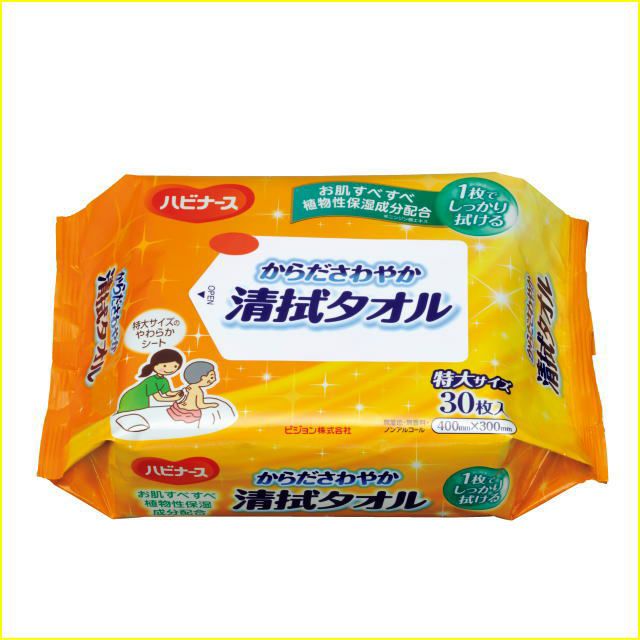 快適な日常生活をお過ごしいただけるためにお役立ていただける商品です商品の説明・1枚で全身を拭ける特大サイズ。保湿成分配合でお肌スベスベ。・新聞紙1/2面の大判サイズ。拭くだけでさわやかになるウエットタオル新聞紙1/2面サイズの大きな不織布1枚で、全身の汚れをすっきり拭きとれるスキンケアウエットタオルです。保湿効果の高い植物性コラーゲン(ニンジン根エキス)が、かさつきがちなお肌にうるおいを与えます