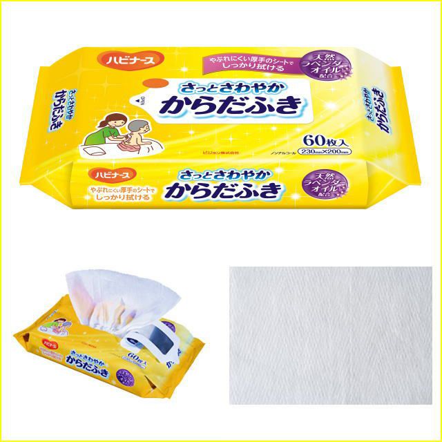 快適な日常生活をお過ごしいただけるためにお役立ていただける商品です商品の説明・天然保湿成分配合で、お肌にやさしいウェットタオル。・さわやかなラベンダーの香り。・おむつ替えの時にもお使いいただけます。・ふくだけさわやかになるウエットタオルだからいつでも清潔を保ちます。入浴できない時や、体臭・汗臭を感じたり肌の汚れが気になる時にさっと拭くだけで、身体すっきり。天然ラベンダ-オイル・緑茶抽出エキス(フラボノイド)でお肌をすこやかに保ちます。60枚入り。1枚でたっぷり拭けて経済的。おむつ替えの時にもお使いいただけます。