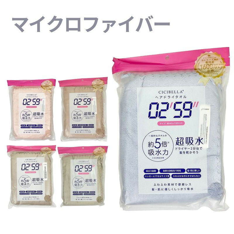 快適な日常生活をお過ごしいただけるためにお役立ていただける商品ですやさしい工夫のアイテムです吸水性、速乾性に優れたマイクロファイバー素材。ふわふわな手触り。 約40×100cm●品名/シシベラ ヘアドライタオル●色/ブルー・ピンク・モカ・モカグレー・グレージュ●サイズ/約40×100cm●素材/ポリエステル85%・ナイロン15%●生産国/中国製●仕様/洗濯機OK(ネット使用)●説明/吸水性、速乾性に優れたマイクロファイバー素材。やわらかなマイクロファイバー素材が髪の水分をすばやく吸い取り、ドライヤー時間を短縮。ふわふわな手触り。 約40×100cm
