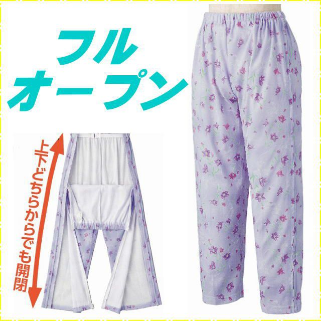 快適な日常生活をお過ごしいただけるためにお役立ていただける商品です【洗い替えパンツ】何枚あっても重宝するパジャマのパンツ。入院時や着せ替えにも便利。おむつ交換などに便利な腰開きパンツのパジャマです。両脇が全開できるので、オムツ交換がスムーズ。 両脇ファスナー(上下どちらかでも開閉できるフルオープンファスナー) ウェストバンド付 裾ファスナーのように開く パンツの間からチューブが通せる 名前が書ける 当布でファスナー部分が肌に当たらない●品名/フルオープン洗い替えパンツ●色/サックス・パープル●サイズ/M・L●材質/ポリエステル65% 綿35% スムース●生産国/中国製●仕様・説明/洗濯機OK 年間素材●説明/両脇が全開できるので、オムツ交換がスムーズ。 両脇ファスナー(上下どちらかでも開閉できるフルオープンファスナー) ウェストバンド付 裾ファスナーのように開く パンツの間からチューブが通せる 名前が書ける 当布でファスナー部分が肌に当たらない