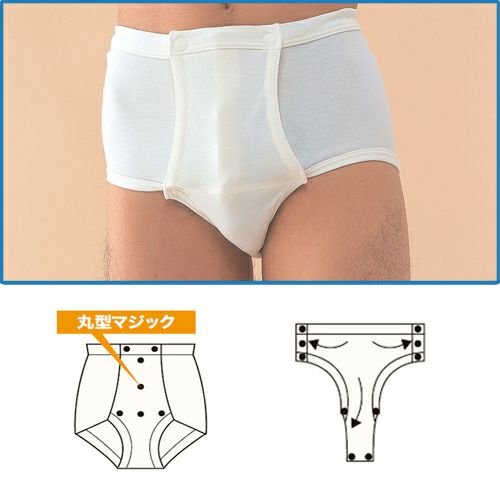 寝たままで着脱可能。ブリーフの間にオシメもはさめます。