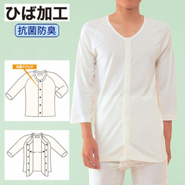【前開き7分袖(ラグラン袖)抗菌 無蛍光ひば加工 (紳士用)マジック式 LLのみ】we921107ll kbhv201