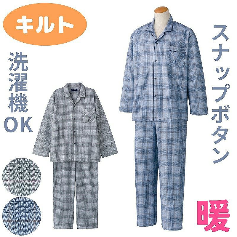 快適な日常生活をお過ごしいただけるためにお役立ていただける商品ですやさしい工夫のアイテムです暖かい空気を逃しにくい秋冬に最適な保温性のよいキルト素材。キルト素材は温かくなった空気を逃さず保温性抜群!ふんわり暖かです着脱カンタン!様々な工夫【ホックボタンパジャマ】脱ぎ着しやすい工夫を凝らした優しい設計です。ボタンが留めにくい方でも着替えに便利な前開きのホック留めです。秋冬に最適な保温性のよいキルト素材キルト素材で温かくなった空気を逃さず保温性抜群●品名/紳士ホックキルトパジャマ●色/ブルー・グレー●サイズ/M・L●素材/ポリエステル80%・綿20%●生産国/中国製●仕様/洗濯機OK(ネット使用) ホック 前開き キルト ※柄は若干変更になる場合もございます。●説明/暖かい空気を逃しにくい秋冬に最適な保温性のよいキルト素材。キルト素材は温かくなった空気を逃さず保温性抜群!ふんわり暖かです