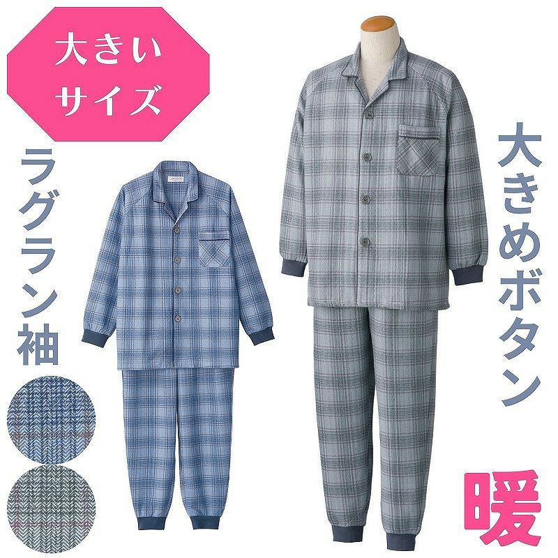 快適な日常生活をお過ごしいただけるためにお役立ていただける商品です着やすさとやさしい工夫のアイテムです暖かい空気を逃しにくい秋冬に最適な保温性のよいキルト素材。キルト素材は温かくなった空気を逃さず保温性抜群!ふんわり暖かです着脱カンタン!様々な工夫脱ぎ着しやすい工夫を凝らした優しい設計です。つかみやすい大きめボタンで手の力が弱くてもボタンの留め外しがラクラクです。一般のボタンに比べてつかみやすい大きめボタンを採用。この違いがご自身での着脱も簡単にしてくれます。ウエスト調整ゴム付なのでゴムを入れ替えなくてもウエストサイズを自由自在に調整できます。秋冬に最適な保温性のよいキルト素材キルト素材で温かくなった空気を逃さず保温性抜群●品名/紳士大きめボタンキルトパジャマ●色/ブルー・グレー●サイズ/3L・4L●素材/ポリエステル80%・綿20%●生産国/中国製●仕様/洗濯機OK(ネット使用) 大きめボタン 動きやすいラグラン袖 手口・足口リブ付 ウエスト調節ゴム付き S~4L 前開き キルト ※柄は若干変更になる場合もございます。●説明/暖かい空気を逃しにくい秋冬に最適な保温性のよいキルト素材。キルト素材は温かくなった空気を逃さず保温性抜群!ふんわり暖かです