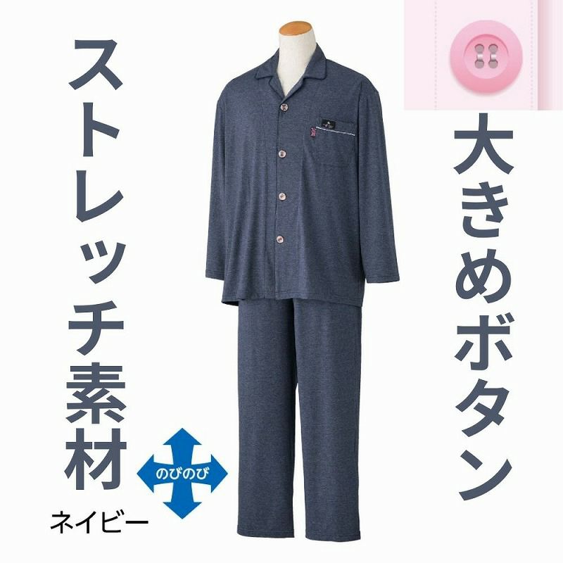 快適な日常生活をお過ごしいただけるためにお役立ていただける商品です着やすさとやさしい工夫のアイテムです伸縮自在のストレッチ素材、動きやすくラクな着心地です。なめらかな肌触りののびのびパジャマ。ストレッチ素材で力の弱い方でも楽にお着替えできます。生地が伸びて着脱しやすい着脱カンタン!様々な工夫脱ぎ着しやすい工夫を凝らした優しい設計です。つかみやすい大きめボタンで手の力が弱くてもボタンの留め外しがラクラクです。一般のボタンに比べてつかみやすい大きめボタンを採用。この違いがご自身での着脱も簡単にしてくれます。●品名/紳士大きめボタンのびのびストレッチパジャマ 年間用●色/ネイビー・サックス●サイズ/M・L●素材/ポリエステル75%・綿20%・ポリウレタン5%●生産国/中国製●仕様/ストレッチ素材 ※柄は若干変更になる場合もございます。 洗濯機OK(ネット使用) 大きめボタン のびのび 年間●説明/伸縮自在のストレッチ素材、動きやすくラクな着心地です。なめらかな肌触りののびのびパジャマ。ストレッチ素材で力の弱い方でも楽にお着替えできます。生地が伸びて着脱しやすい