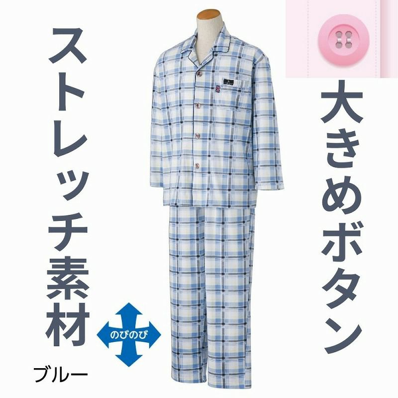 快適な日常生活をお過ごしいただけるためにお役立ていただける商品です着やすさとやさしい工夫のアイテムです伸縮自在のストレッチ素材、動きやすくラクな着心地です。なめらかな肌触りののびのびパジャマ。ストレッチ素材で力の弱い方でも楽にお着替えできます。生地が伸びて着脱しやすい着脱カンタン!様々な工夫脱ぎ着しやすい工夫を凝らした優しい設計です。つかみやすい大きめボタンで手の力が弱くてもボタンの留め外しがラクラクです。一般のボタンに比べてつかみやすい大きめボタンを採用。この違いがご自身での着脱も簡単にしてくれます。●品名/紳士大きめボタンのびのびストレッチパジャマ 年間用●色/ブルー・グレー●サイズ/M・L●素材/ポリエステル75%・綿20%・ポリウレタン5%●生産国/中国製●仕様/ストレッチ素材 ※柄は若干変更になる場合もございます。 洗濯機OK(ネット使用) 大きめボタン のびのび 年間●説明/伸縮自在のストレッチ素材、動きやすくラクな着心地です。なめらかな肌触りののびのびパジャマ。ストレッチ素材で力の弱い方でも楽にお着替えできます。生地が伸びて着脱しやすい
