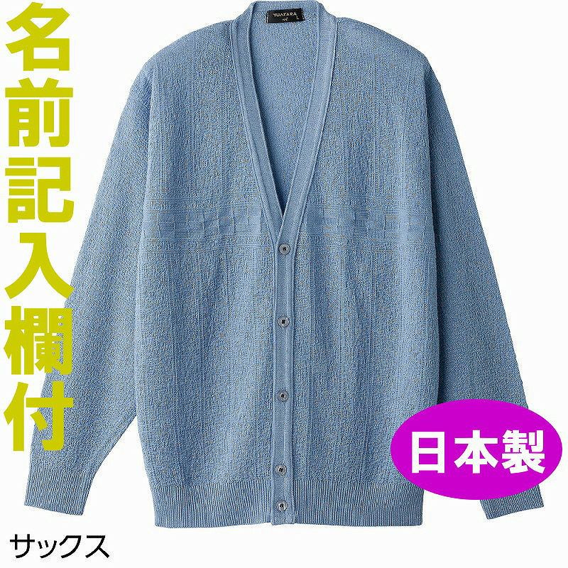 快適な日常生活をお過ごしいただけるためにお役立ていただける商品です着やすさとやさしい工夫のアイテムです【日本製サマーニット】着心地が良く、涼やかで春夏にぴったりのニット。上品で高級感のある生地で安心の日本製です。春夏に最適なさわやかな麻混素材。名前記入欄付で間違い防止名前が書けるタグ付きなので、入院や施設入居時など、脱いだ後や洗濯後も他人のものと間違うことがありません。●品名/国産麻混ニットカーディガン●色/グレー・サックス・ネイビー●サイズ/M・L・LL●素材/アクリル65%・麻35%●生産国/日本製●仕様/洗濯機OK 名前記入欄付●説明/【日本製サマーニット】着心地が良く、涼やかで春夏にぴったりのニット。上品で高級感のある生地で安心の日本製です。春夏に最適なさわやかな麻混素材。