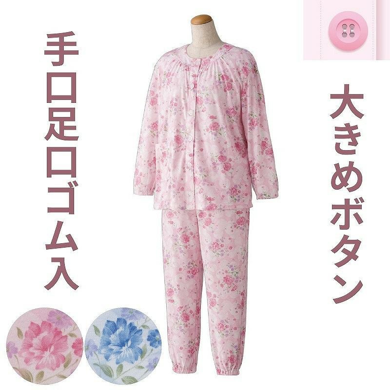 快適な日常生活をお過ごしいただけるためにお役立ていただける商品です着やすさとやさしい工夫のアイテムです肌触りのよいスムース素材。 ※柄は若干変更になる場合もございます。着脱カンタン!様々な工夫脱ぎ着しやすい工夫を凝らした優しい設計です。つかみやすい大きめボタンで手の力が弱くてもボタンの留め外しがラクラクです。一般のボタンに比べてつかみやすい大きめボタンを採用。この違いがご自身での着脱も簡単にしてくれます。【手口・足口ゴム入り】手口と足口にゴム入りなので、めくれ上がりにくい設計です。●品名/大きめボタンプチサイズパジャマ(年間用)●色/ピンク・サックス●サイズ/S・M・L・LL(P)●素材/ポリエステル80%・綿20%●生産国/中国製●仕様/洗濯機OK 大きめボタン 手口・足口ゴム入り●説明/肌触りのよいスムース素材。 スムース ※柄は若干変更になる場合もございます。
