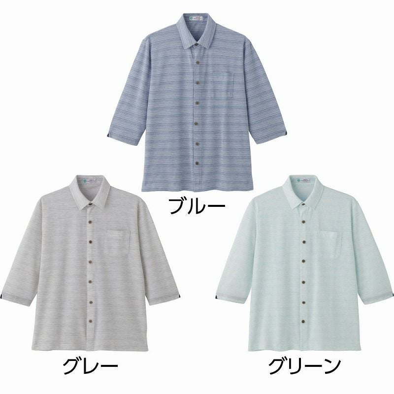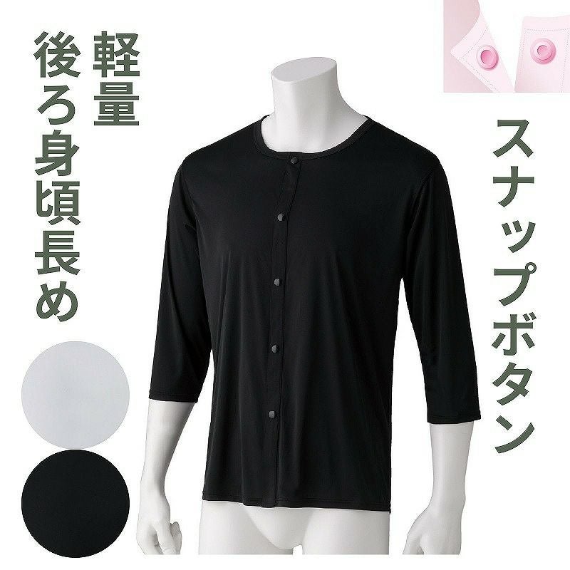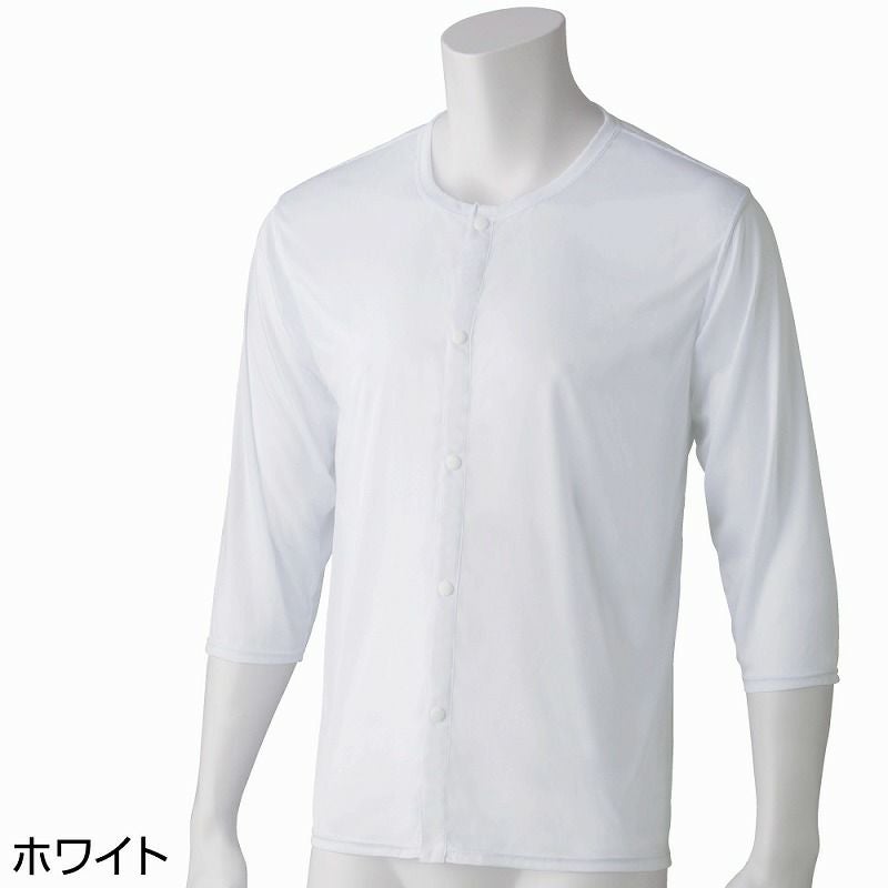 【紳士麻混スナップ釦7分袖ニットシャツ M・L・LL】 A24-821830