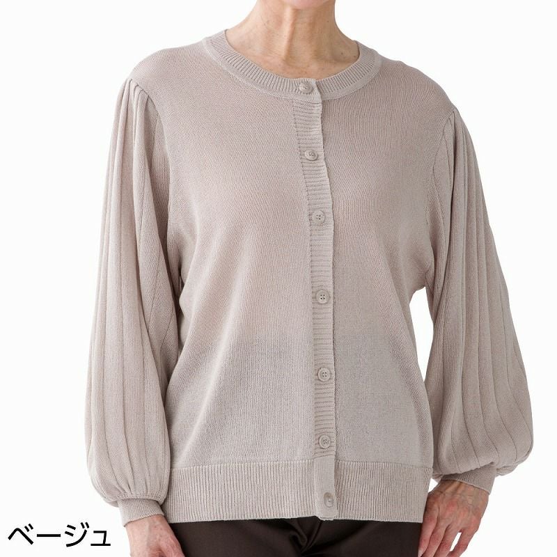 【婦人ニット袖プリーツカーディ M-L】 A24-821709