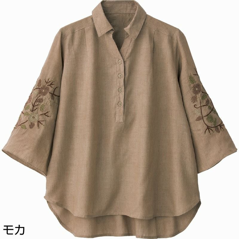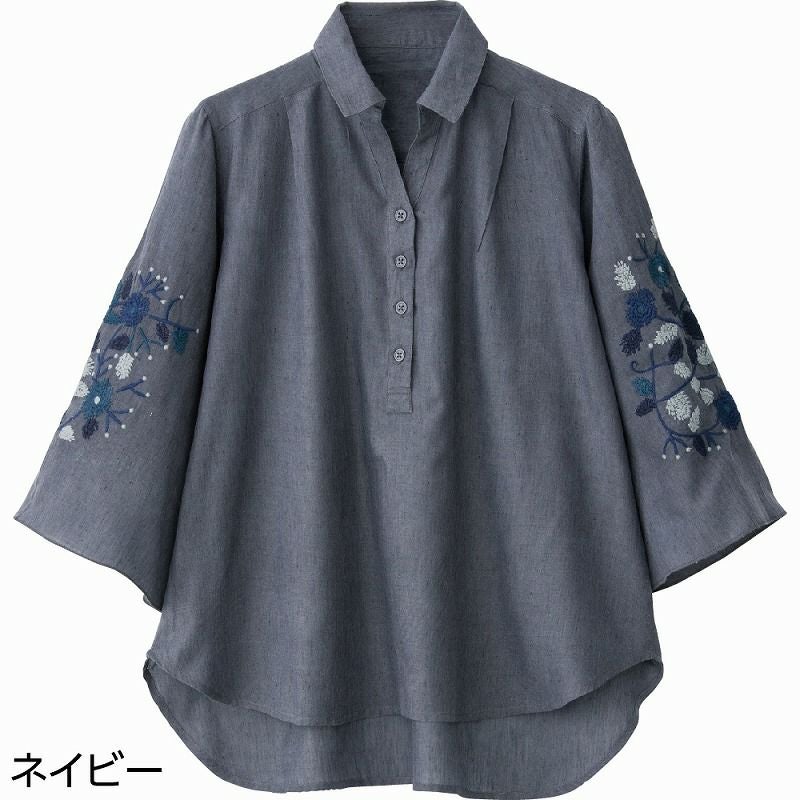 【婦人7分袖クラフト刺繍半開ブラウス M・L・LL】 A24-821723