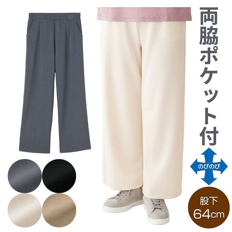 【婦人柔らかハイテンションワイドパンツM・L・LL】 A24-821736z