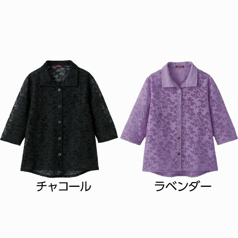 【婦人7分袖斜め釦ホールシャツカーディガンM・L】 A24-821800z