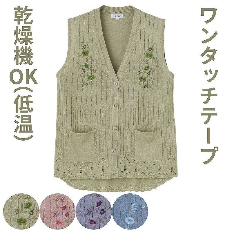 【婦人ニットワンタッチテープV首ベスト S・M-L・LL】 A24-821684