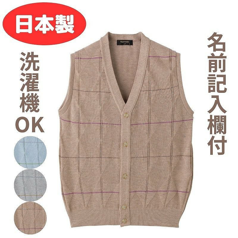 【紳士国産ニット前開きベスト M・L】 A18-821850