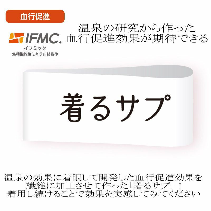 快適な日常生活をお過ごしいただけるためにお役立ていただける商品です着やすさとやさしい工夫のアイテムです温泉の研究から作った、血行促進効果ができる「着るサプ」。温泉の効果に着眼して開発した血行促進素材を繊維に加工させて作りました。着用し続けることで効果を実感してみてください。お部屋・ご近所など普段使いに! ゴム取替え可能●品名/着るサプIFMC.おしりスルッとカチオンライトパンツ●色/ベージュ・グレー・ブラック●サイズ/S・M・L・LL・3L●素材/ポリエステル100%●生産国/中国製●仕様/着るサプ 名前記入欄付 股下55cm 両脇ポケット付き のびのび(縦横) ゴムの取り換え可能●説明/お部屋・ご近所など普段使いに! ゴム取替え可能IFMC.(イフミック:集積機能性ミネラル結晶体)は(株)テイコク製薬社が温泉療法に着眼して製造したナノメーターレベルの非常に微小なミネラルの結晶体です。 数種類の鉱物を組み合わせて鉄分の多い温泉水に一定時間浸漬し、その溶出液を特殊処理して抽出した物質です。身体に近接させることで血管から一酸化窒素(NO)が拡散し、血管が拡張することによる血行促進効果が期待できます。