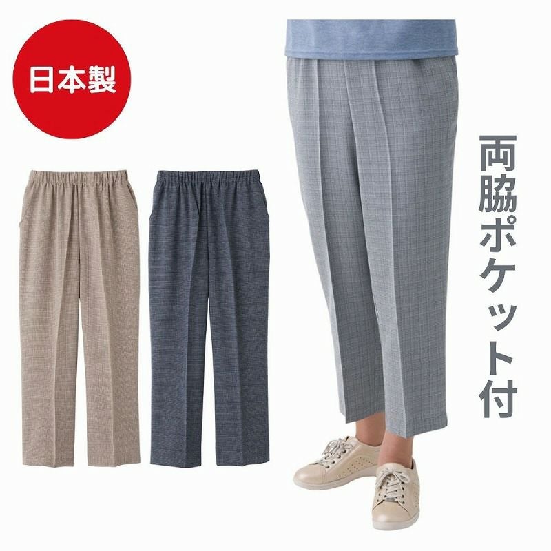 【婦人麻混格子フリーパンツ(股下55cm)M・L・LL・3L】 A24-821258wz