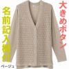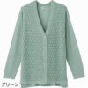 快適な日常生活をお過ごしいただけるためにお役立ていただける商品です【快適ニット】機能性とお洒落を追求しました着やすさとやさしい工夫がうれしい!冷房や日除け対策にも欠かせない快適ニットインナーとも合わせやすく、脱ぎ着しやすく羽織るのに便利!脱ぎ着がしやすい大きめボタン&斜めボタンホール。着脱カンタン!様々な工夫つかみやすい大きめボタンと斜めボタンホールで脱ぎ着しやすい工夫を凝らした優しい設計です。脱ぎ着もしやすく、快適な着心地です。後ろ身頃を長めにしているので、背中が曲がった方でも、背中が出にくい設計です。名前記入欄付で間違い防止名前が書けるタグ付きなので、入院や施設入居時など、脱いだ後や洗濯後も他人のものと間違うことがありません。●品名/婦人ニット後ろ長めV首カーディ●色/ベージュ・ラベンダー・ローズ・グリーン●サイズ/M~L●素材/レーヨン90%・ナイロン10%●生産国/中国製●仕様/大きめボタン&斜めボタンホール 名前記入欄付 身幅ゆったり 後ろ身頃長め 洗濯機OK(ネット使用)●説明/脱ぎ着がしやすい大きめボタン&斜めボタンホール。