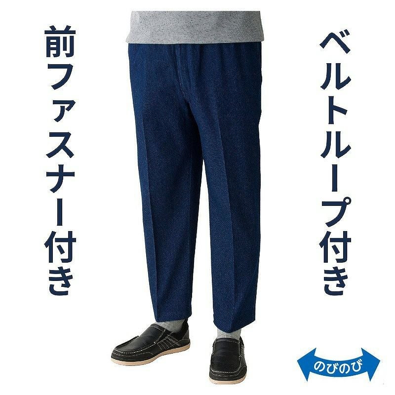 快適な日常生活をお過ごしいただけるためにお役立ていただける商品です着やすさとやさしい工夫のアイテムです春夏のデイリーカジュアルスタイル。気軽にはけるから毎日快適です。のびのび素材を使用し、はき心地が快適なストレッチデニムです。●品名/総ゴムらくらくデニムパンツ●色/ネイビー●サイズ/M・L・LL・3L●素材/綿75%・ポリエステル20%・ポリウレタン5%●生産国/中国製●仕様/洗濯機OK 両脇両後ポケット付 のびのび 前ファスナー付 ベルトループ付 ウエスト総ゴム/ウエスト内ひも付 ※ウエストゴム取替え仕様ではありません ●説明/春夏のデイリーカジュアルスタイル。気軽にはけるから毎日快適です。のびのび素材を使用し、はき心地が快適なストレッチデニムです。